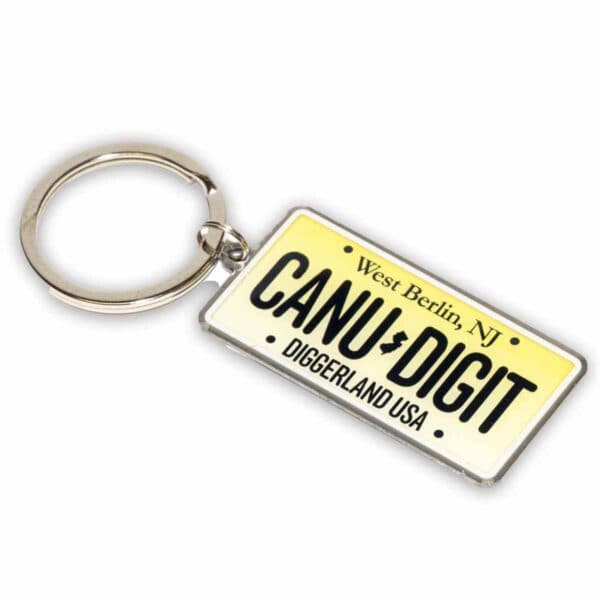 Custom made Diggerland CANU-DIGIT key chain; rectangle measures 2″ x 1″